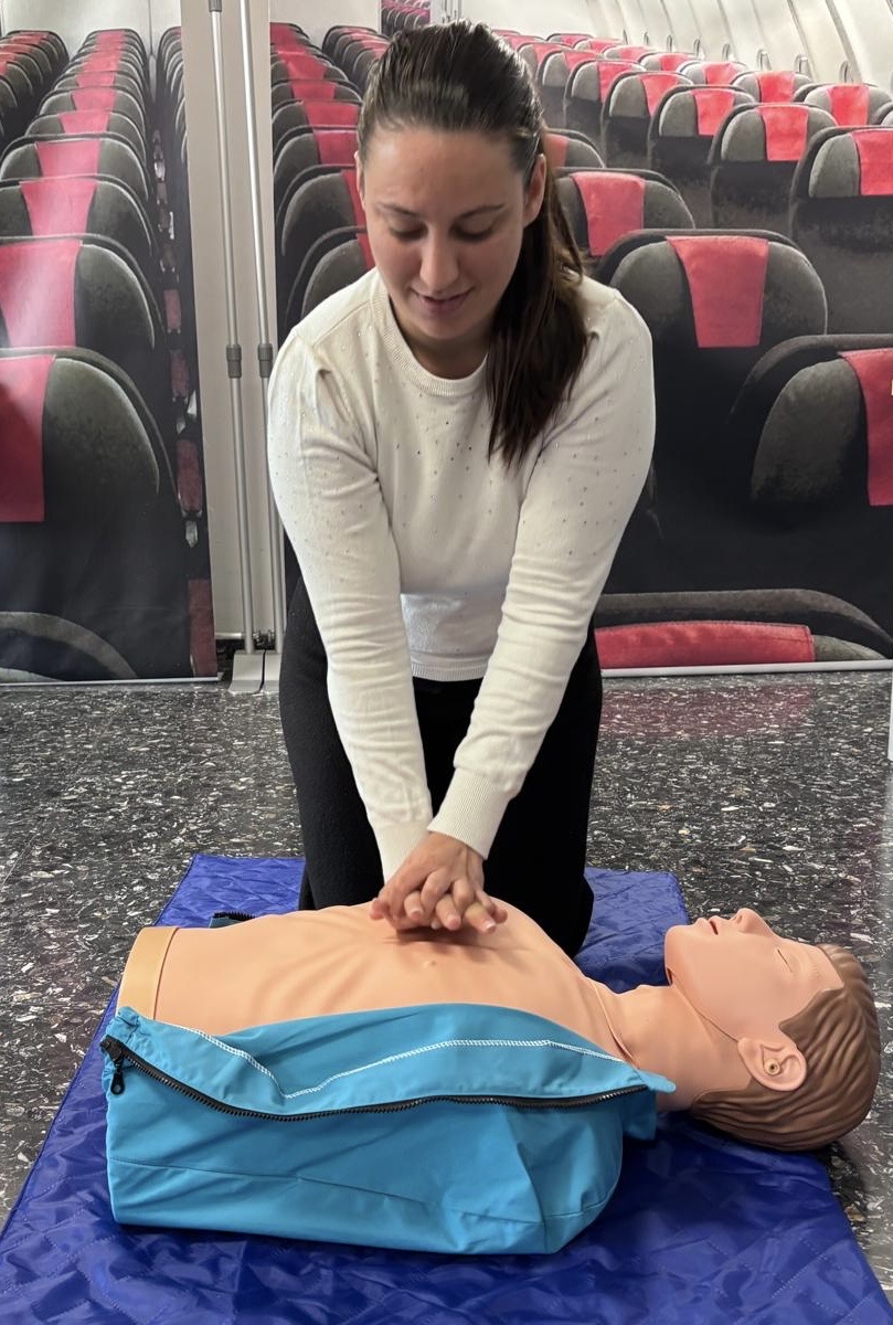 Un Tripulante de Cabina debe estar preparado para actuar con rapidez y eficacia ante cualquier situación: desde atender una emergencia médica, como un infarto o un atragantamiento, hasta coordinar una evacuación del avión en cuestión de segundos. Por eso, la formación incluye prácticas reales en simuladores, entrenamientos en piscina y ejercicios que recrean situaciones de emergencia.